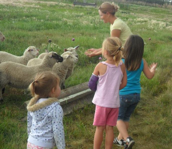 On August long weekend, a reunion for our family was held in our town. Over 100 family members were there, including Lorna, John’s 98-year-old mother and relatives from as far away as Texas and Whitehorse. As usual, some of the kids (and adults) wanted to come and have a look at the sheep and the farm. They especially loved Sam (the friendliest guard dog) and the bottlefed lambs.