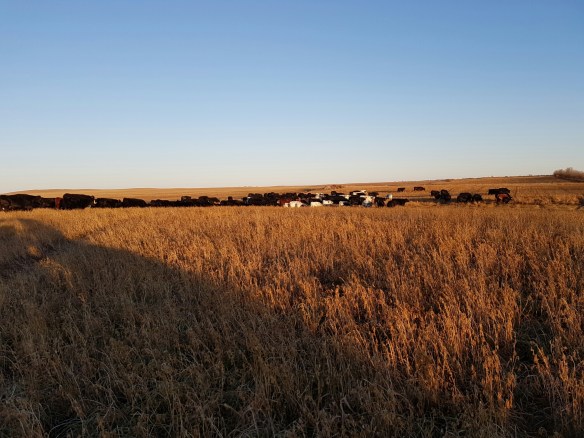 I have also heard some recent rumblings about the impact of plowing grasslands on release of carbon. It is estimated that prairie grasslands hold about 80 tonnes of carbon per hectare; most of which is held in the soil itself. By using the land for cropping, 25- 30% of this carbon is released into the atmosphere. Estimates are that for every tonne of carbon decomposed, 3.67 tonnes of CO2 are released to the atmosphere. At a price of $15/tonne for CO2 equivalent, the value of this stored carbon is over $1100/ hectare (or just under $450/acre). (Full disclosure, I found these figures online and am not a climatologist, so cannot be certain they are correct). And yet there is little incentive for producers to convert marginal crop land back to grass, or to keep that marginal land in grass production. As soil becomes degraded, it loses its ability to store carbon, while methods such as grazing, crop rotations, no-tillage and composting help to regenerate the soil and improve its sequestration abilities. One of the overlooked ways to combat climate change may be a combination of using ecological methods on productive land to produce grains, oilseeds and legumes for human consumption, and maintaining other areas in grass to produce meat for human consumption.