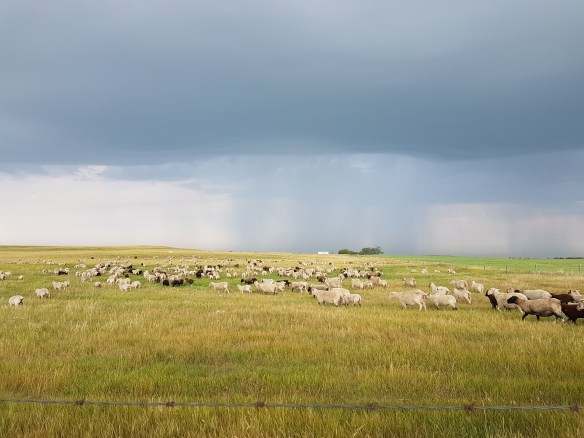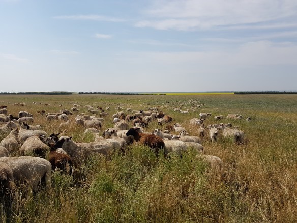 Strung out, looks like a lot of sheep!