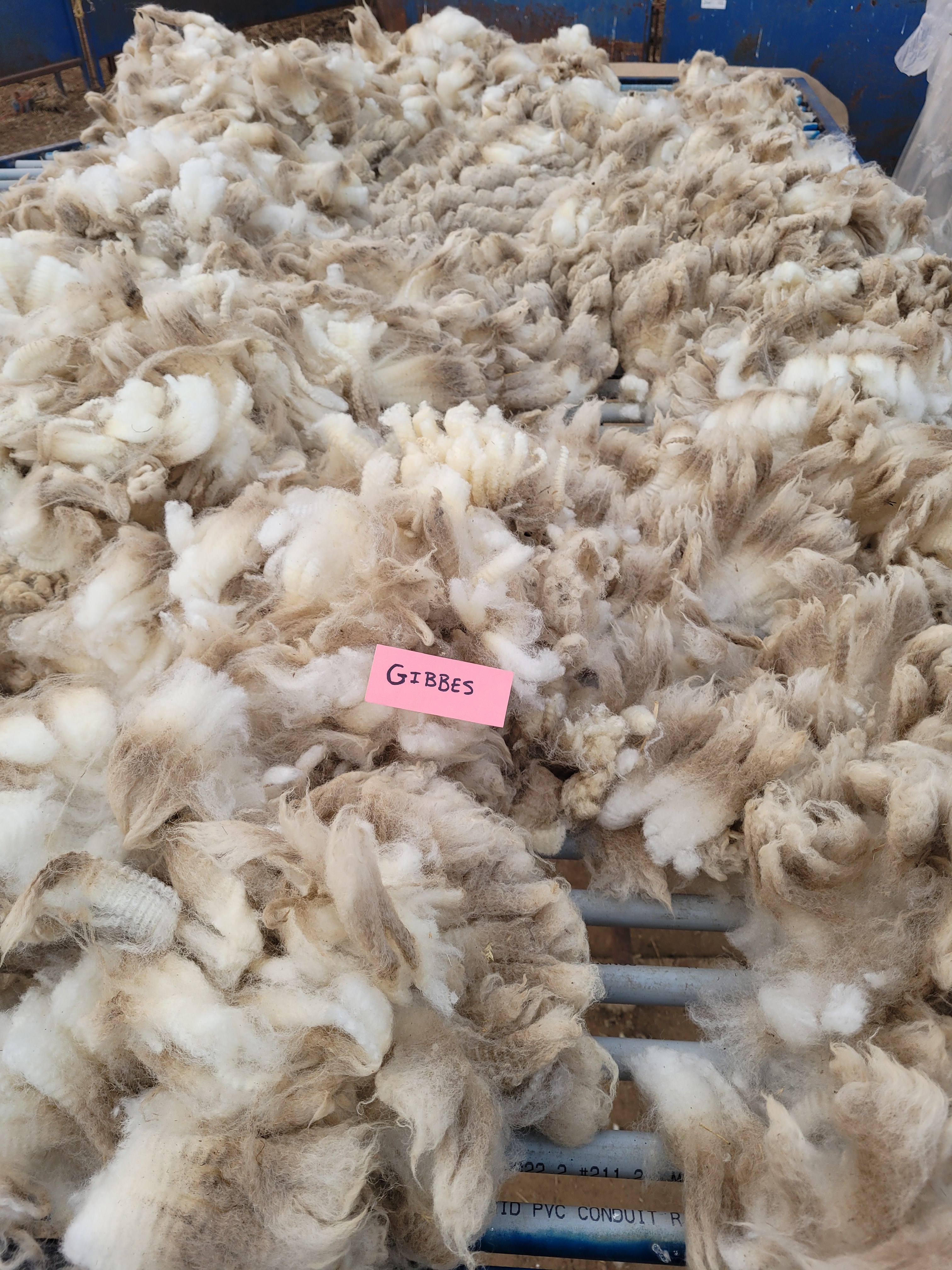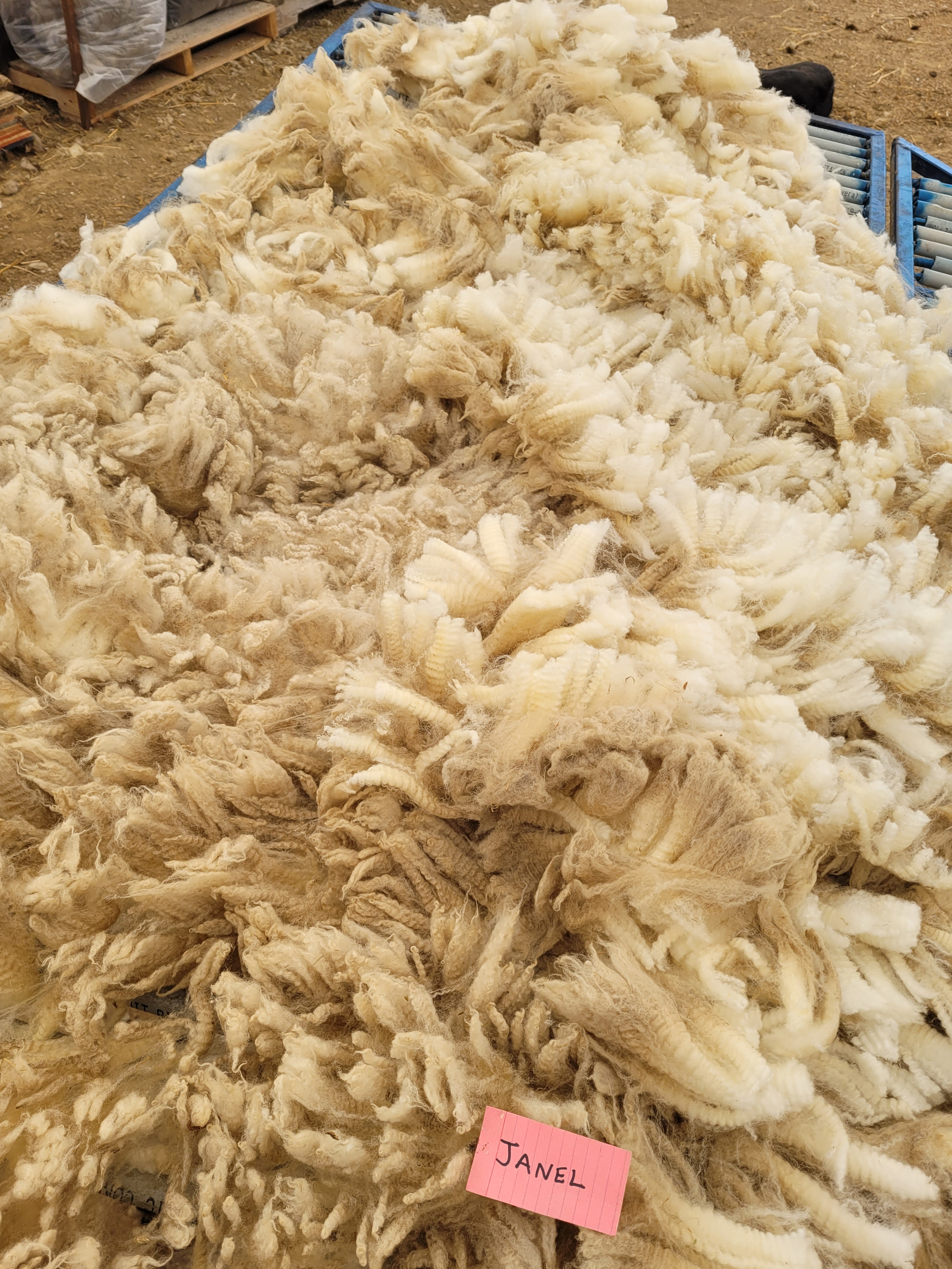 4 1/2-5″ staple. Wide, crimp, mostly well defined. Bright and lustrous. Somewhat lofty. Quite clean of VM. Jumbled, possibly missed a small amount of skirtings 6lb 14oz $62